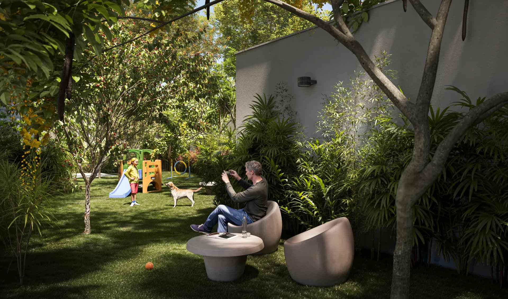 A segurança foi planejada para ser eficiente sem comprometer a sensação de liberdade e convívio. O sistema moderno de monitoramento integrado com áreas comuns que incentivam a circulação natural dos moradores criam um ambiente protegido e ao mesmo tempo acolhedor.